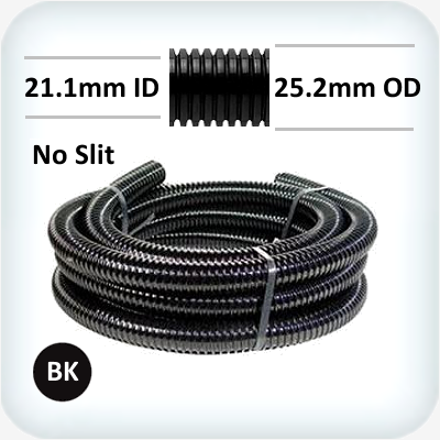 Corrugated Polypropylene Tube / Conduit - 20mm ID - No Slit - Black