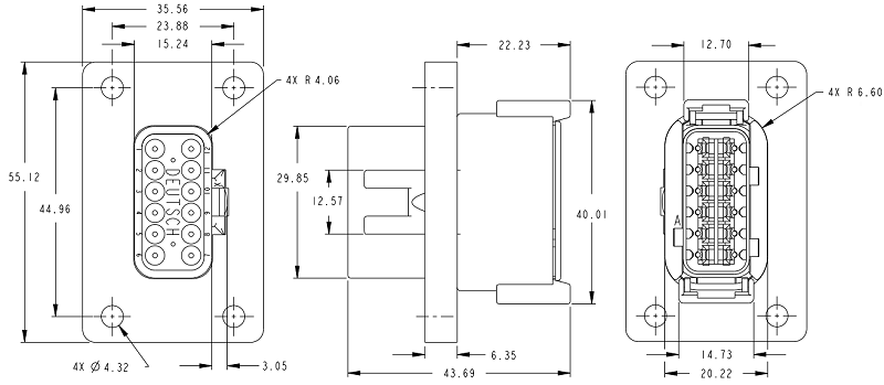 DTM04-12PB-L012 12 Way Flanged Receptacle Housing B Key